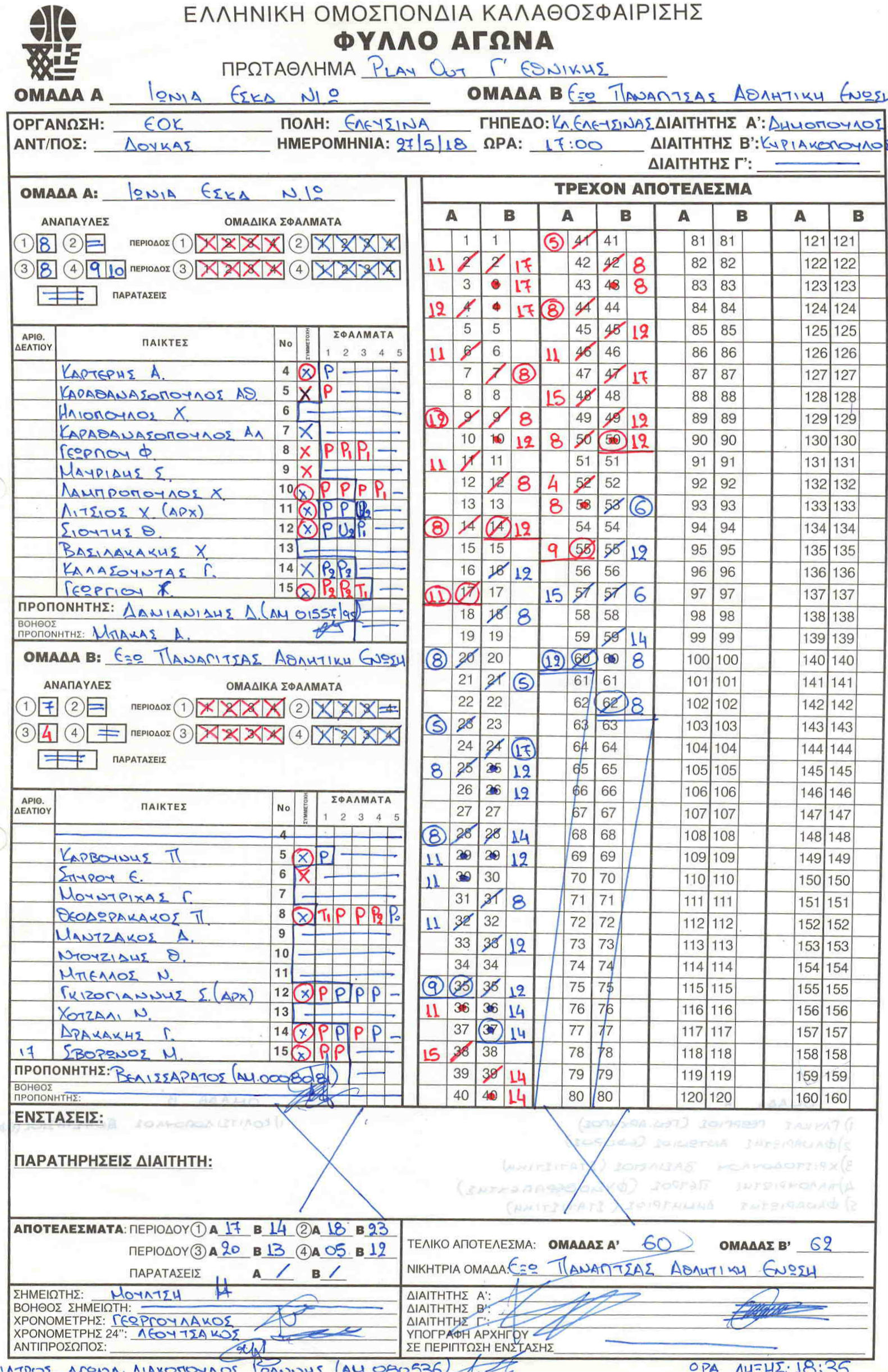 ΣΚΟΡΕΡΣ ΤΕΛΙΚΗΣ ΦΑΣΗΣ ΚΟΡΑΣΙΔΕΣ U16