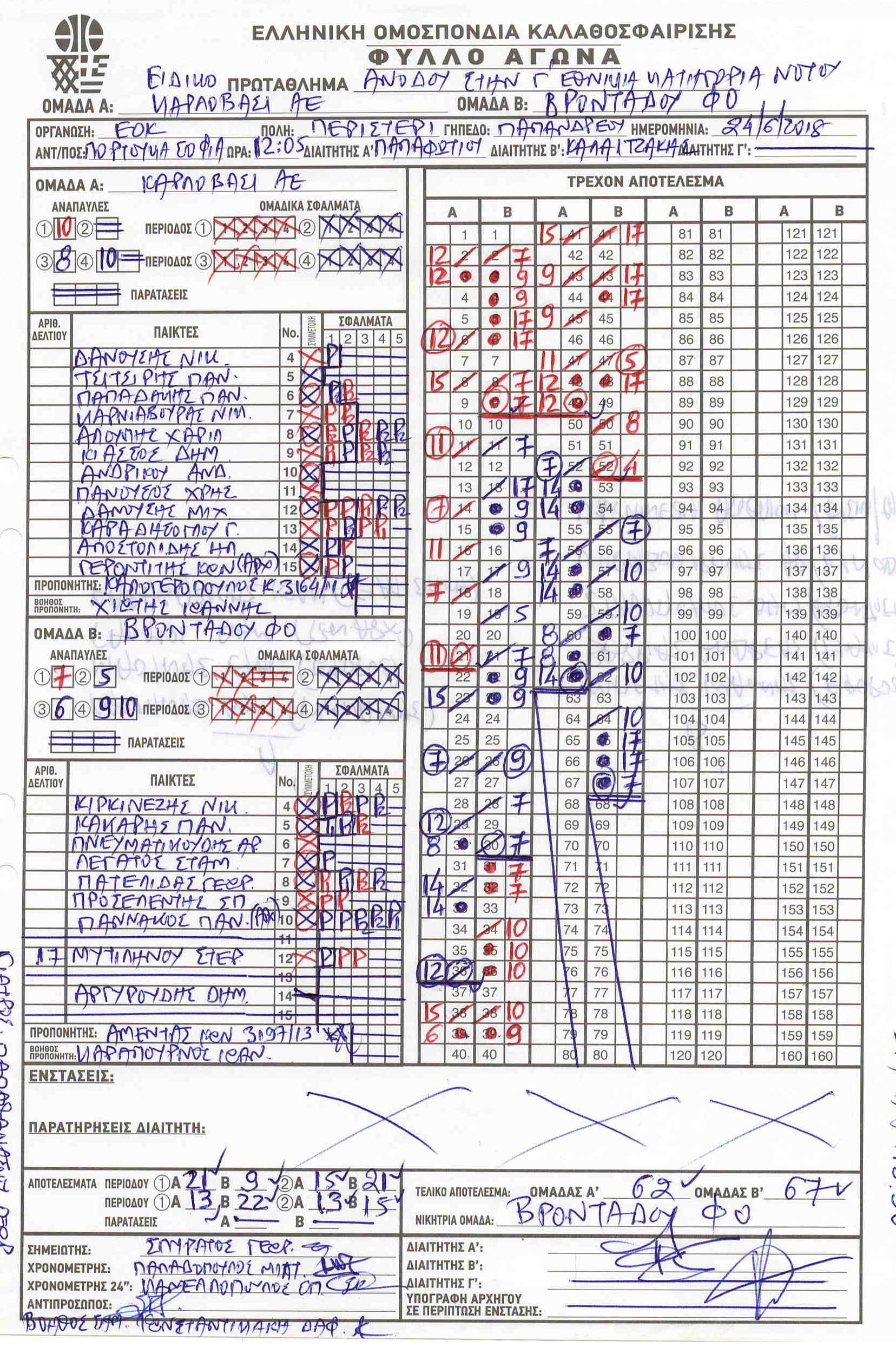 ΣΚΟΡΕΡΣ ΤΕΛΙΚΗΣ ΦΑΣΗΣ ΚΟΡΑΣΙΔΕΣ U16