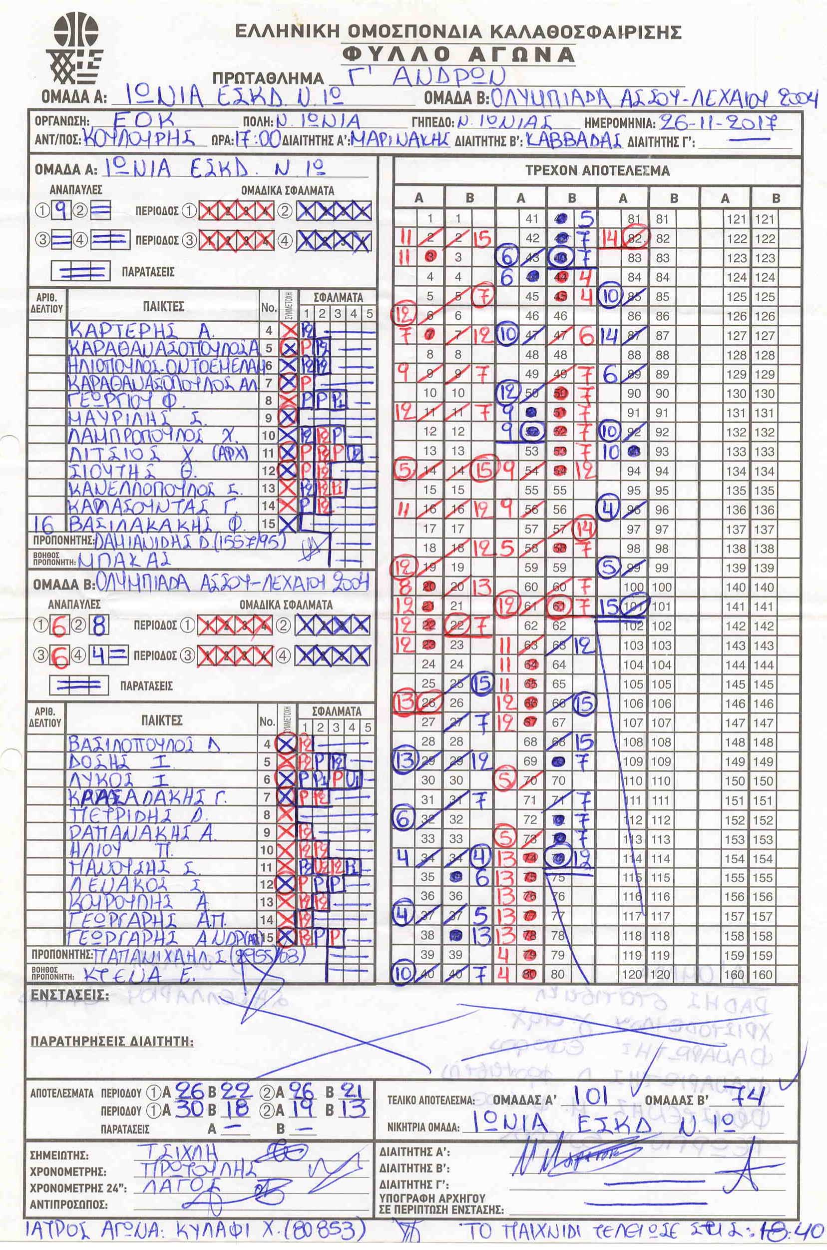 ΣΚΟΡΕΡΣ ΤΕΛΙΚΗΣ ΦΑΣΗΣ ΚΟΡΑΣΙΔΕΣ U16