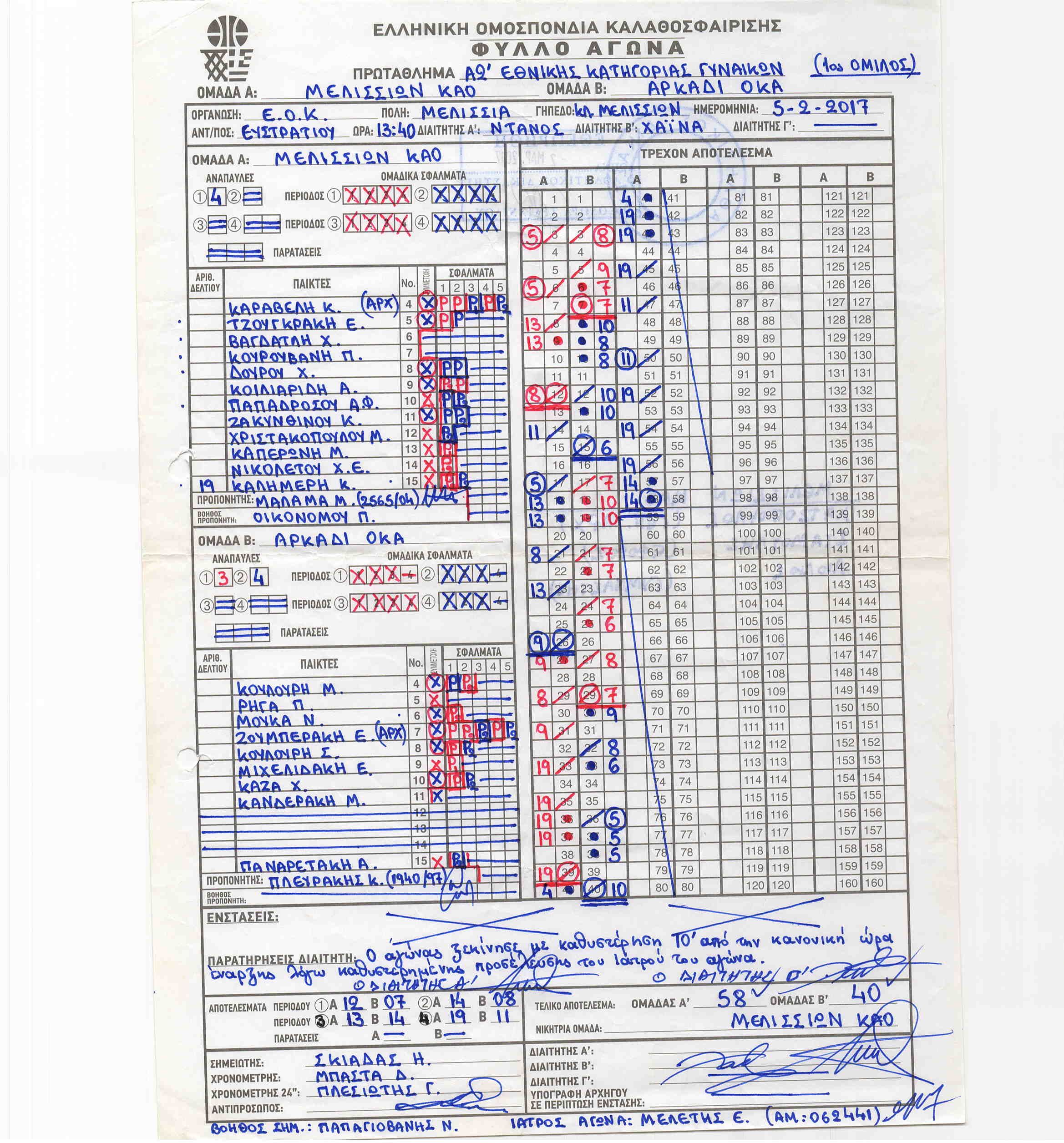 ΣΚΟΡΕΡΣ ΤΕΛΙΚΗΣ ΦΑΣΗΣ ΚΟΡΑΣΙΔΕΣ U16