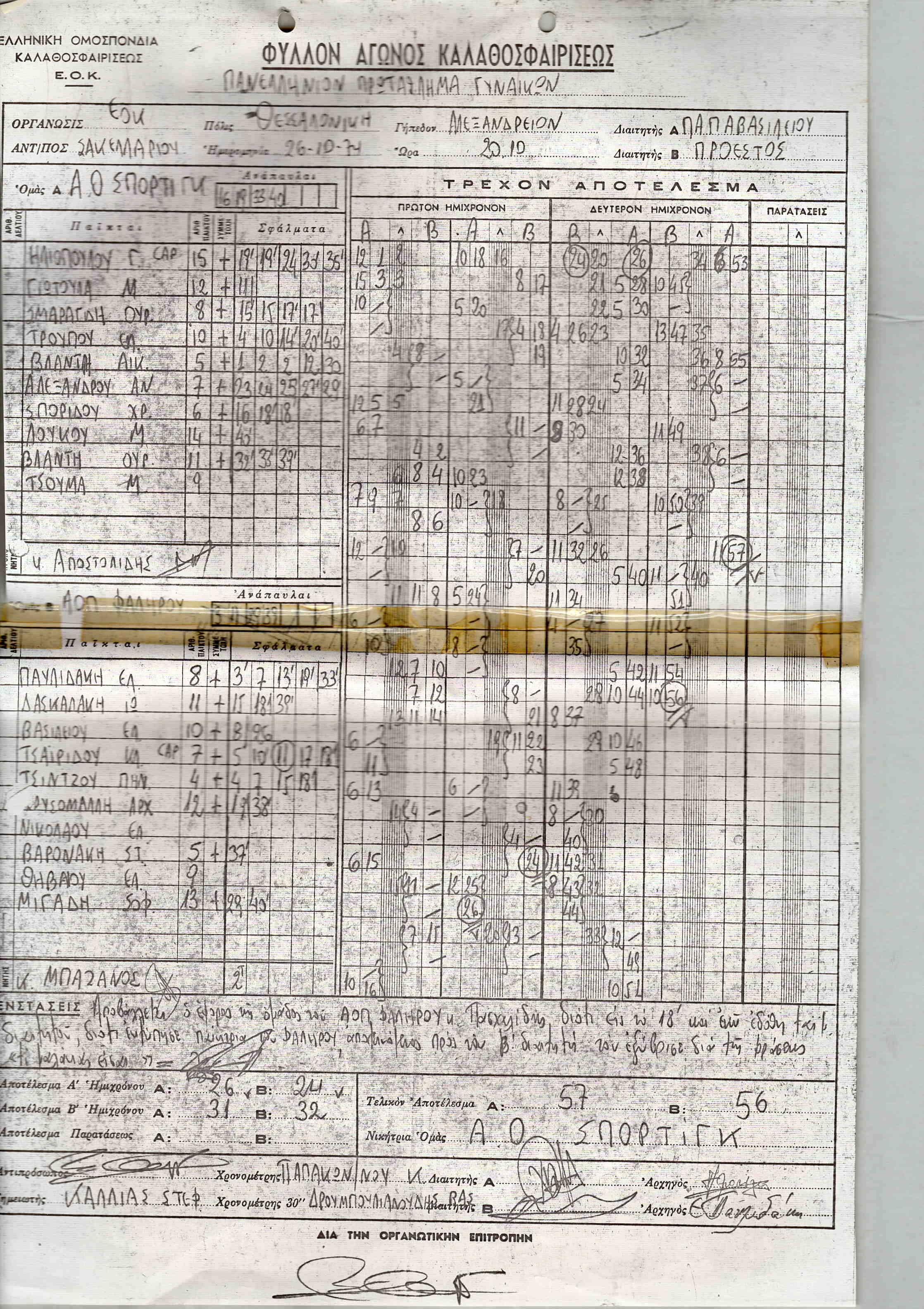 ΣΚΟΡΕΡΣ ΤΕΛΙΚΗΣ ΦΑΣΗΣ ΚΟΡΑΣΙΔΕΣ U16