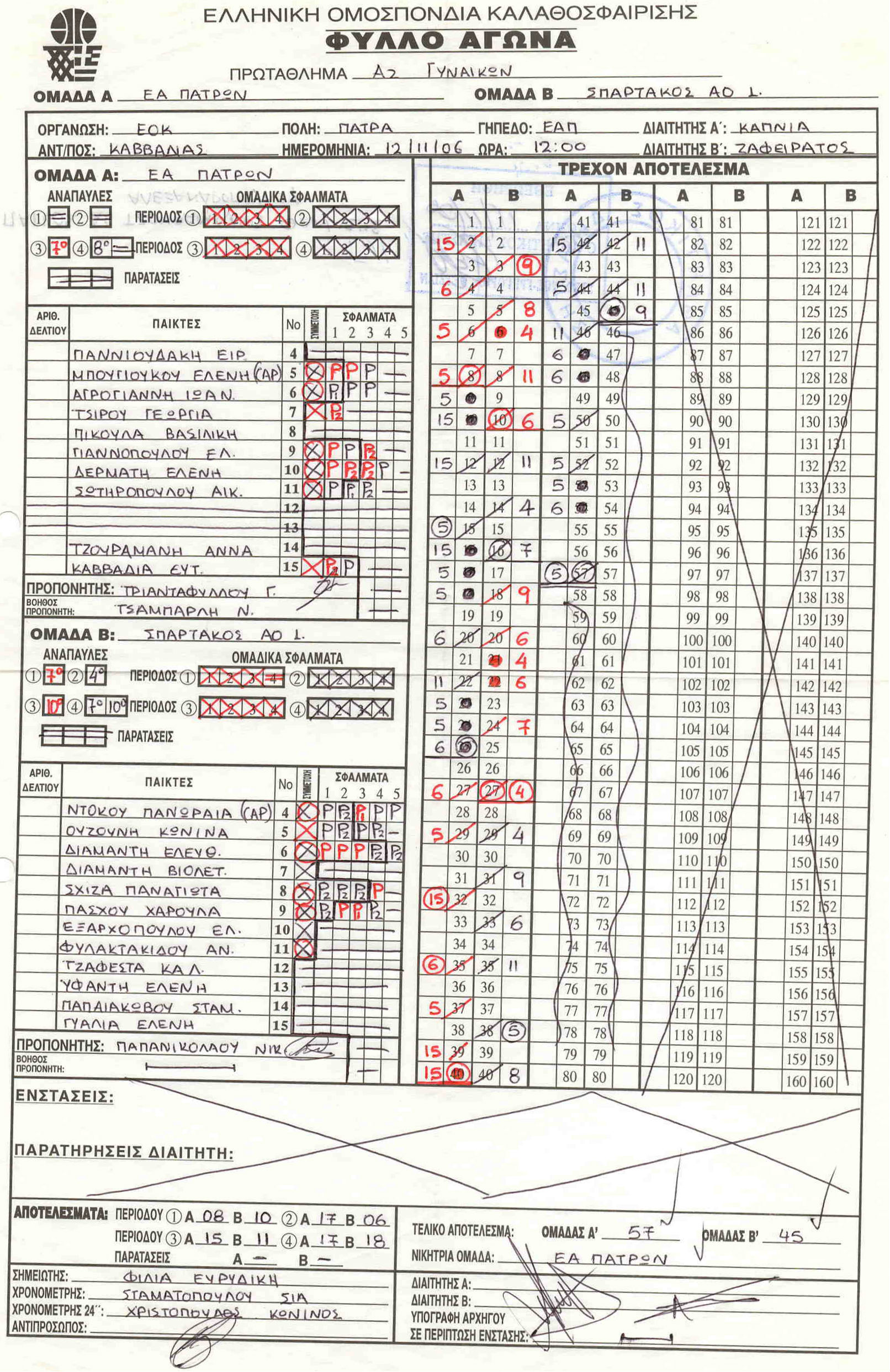 ΣΚΟΡΕΡΣ ΤΕΛΙΚΗΣ ΦΑΣΗΣ ΚΟΡΑΣΙΔΕΣ U16