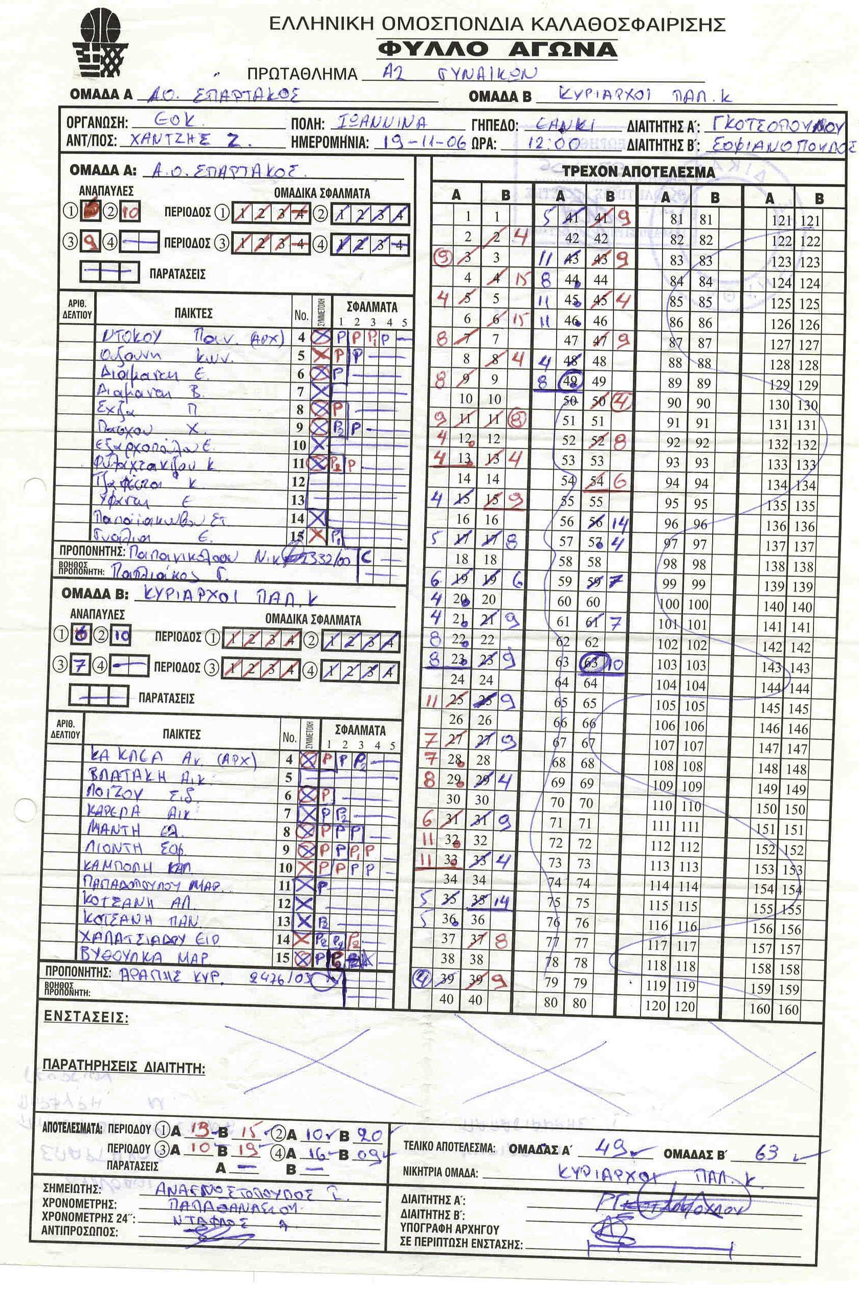 ΣΚΟΡΕΡΣ ΤΕΛΙΚΗΣ ΦΑΣΗΣ ΚΟΡΑΣΙΔΕΣ U16