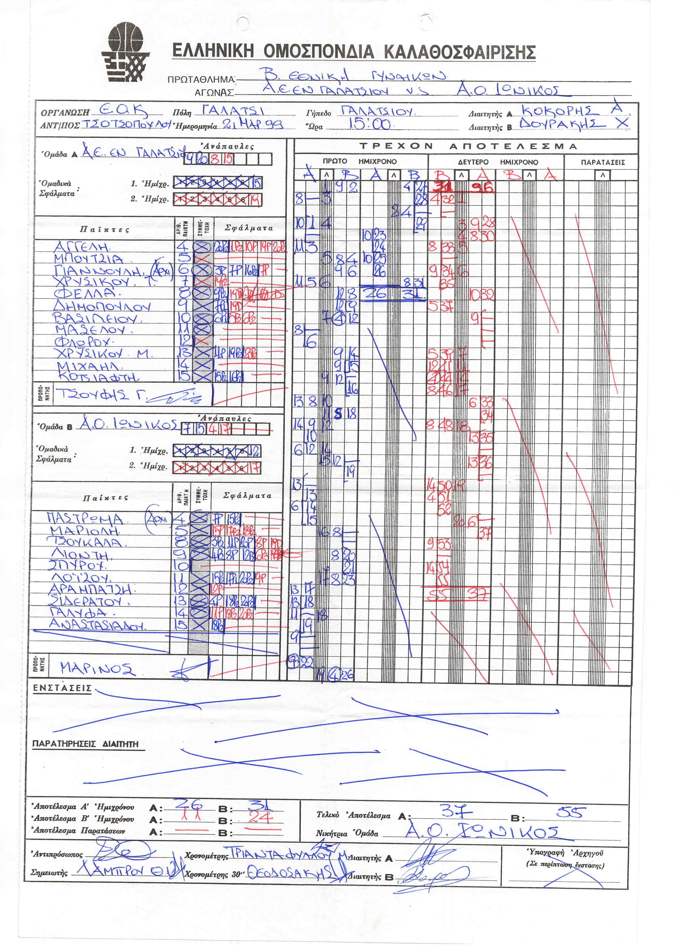 ΣΚΟΡΕΡΣ ΤΕΛΙΚΗΣ ΦΑΣΗΣ ΚΟΡΑΣΙΔΕΣ U16