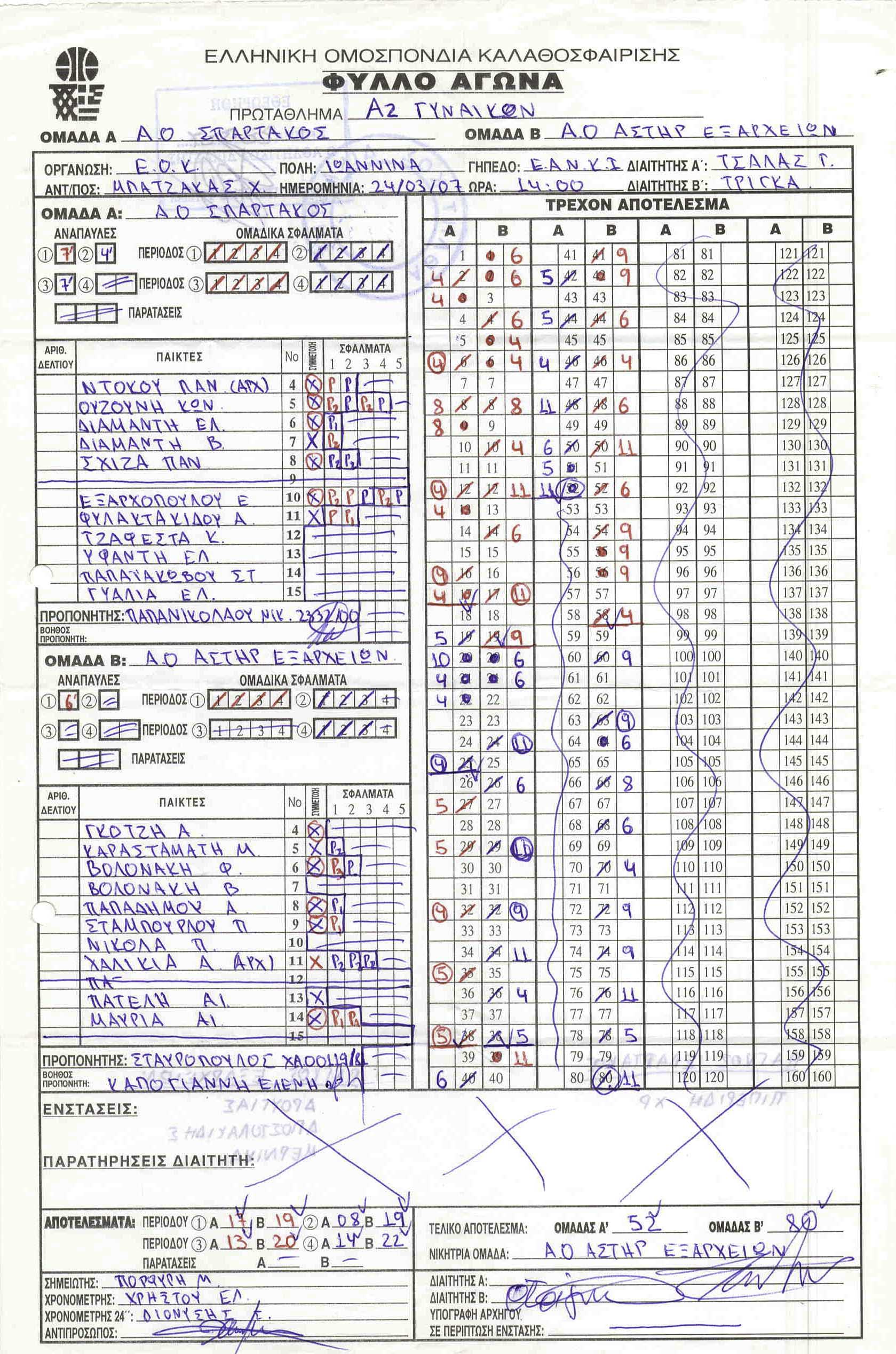 ΣΚΟΡΕΡΣ ΤΕΛΙΚΗΣ ΦΑΣΗΣ ΚΟΡΑΣΙΔΕΣ U16
