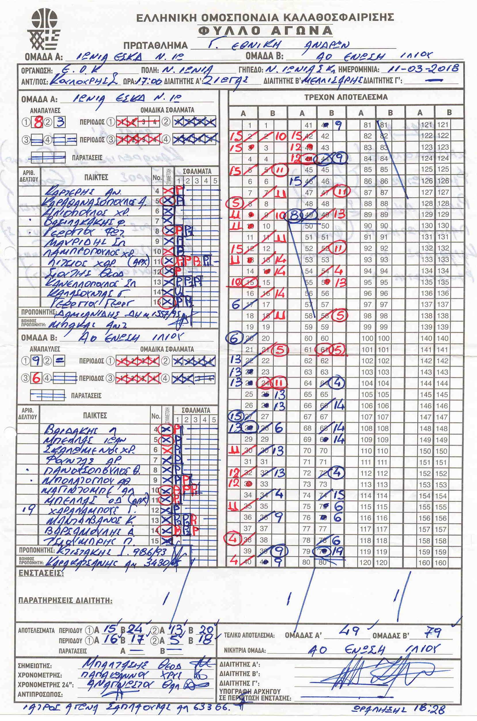 ΣΚΟΡΕΡΣ ΤΕΛΙΚΗΣ ΦΑΣΗΣ ΚΟΡΑΣΙΔΕΣ U16
