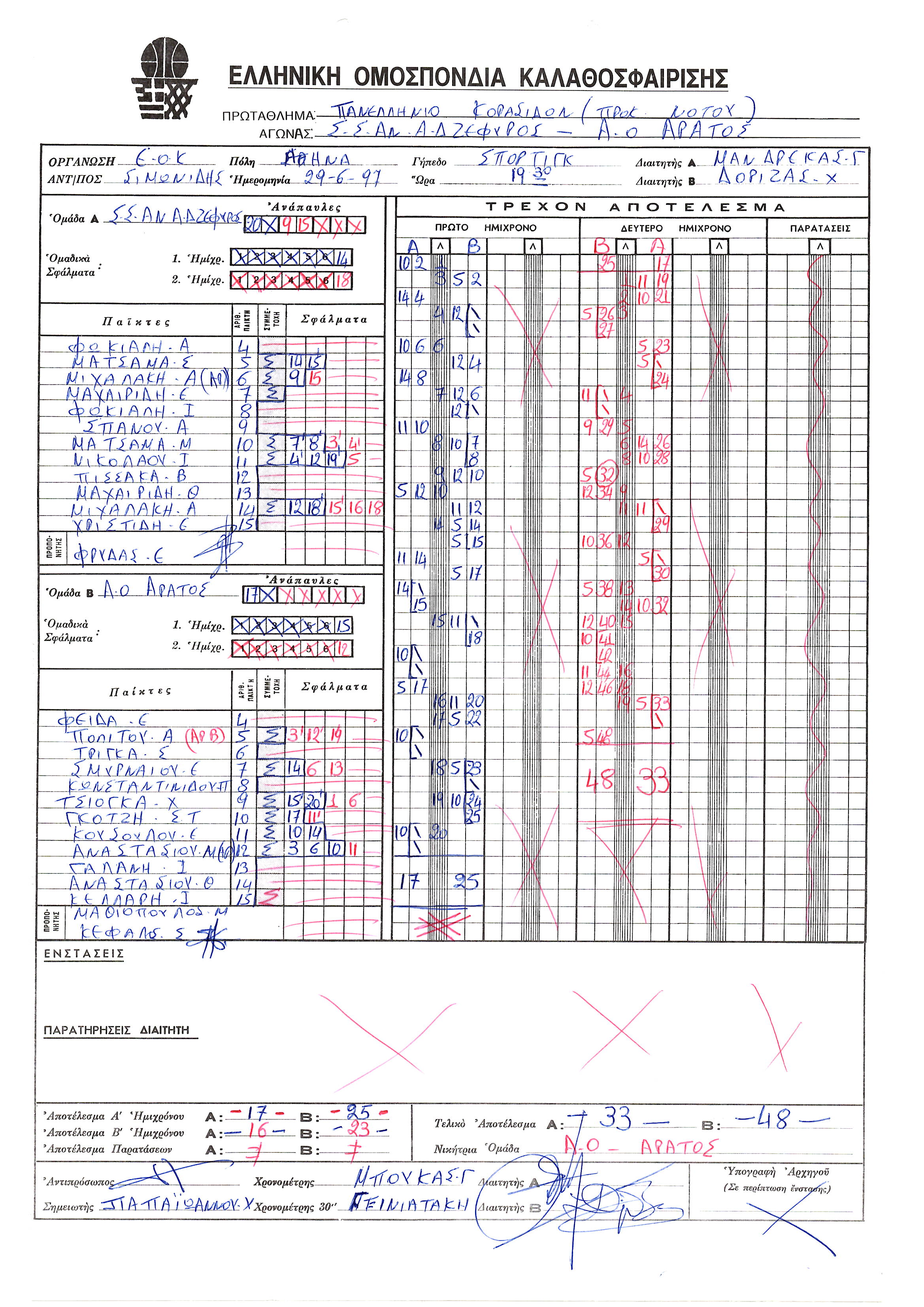 ΣΚΟΡΕΡΣ ΤΕΛΙΚΗΣ ΦΑΣΗΣ ΚΟΡΑΣΙΔΕΣ U16