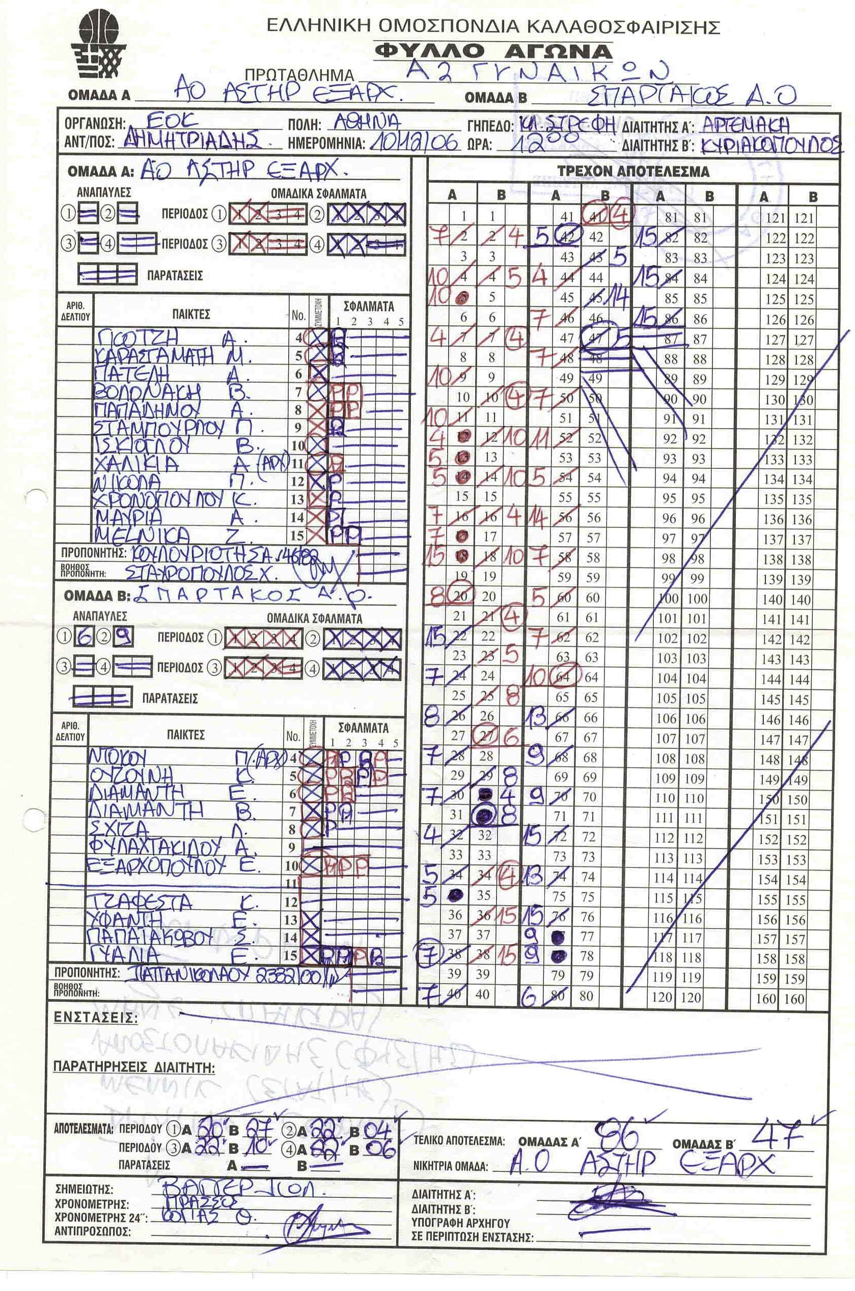 ΣΚΟΡΕΡΣ ΤΕΛΙΚΗΣ ΦΑΣΗΣ ΚΟΡΑΣΙΔΕΣ U16