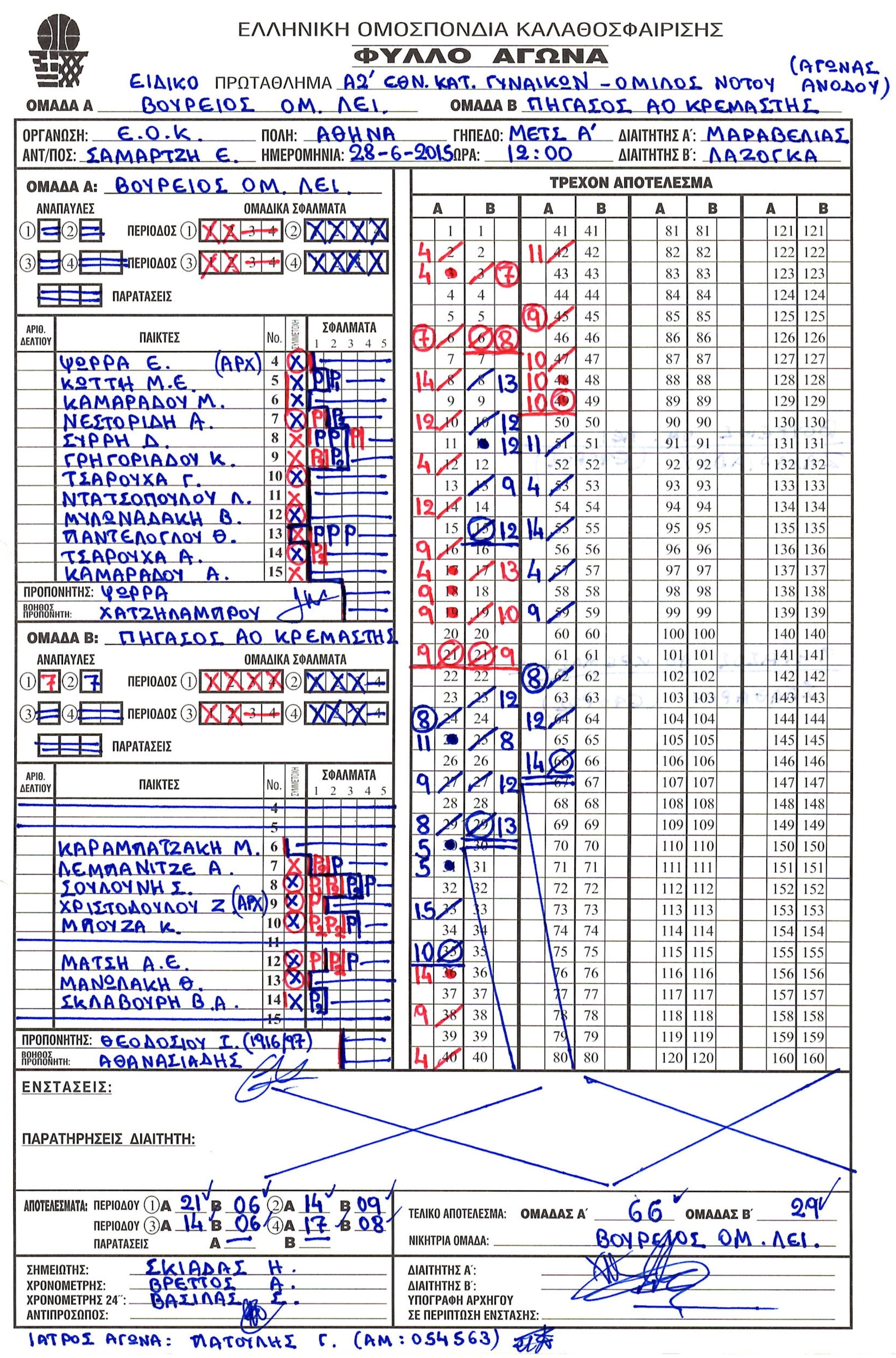 ΣΚΟΡΕΡΣ ΤΕΛΙΚΗΣ ΦΑΣΗΣ ΚΟΡΑΣΙΔΕΣ U16