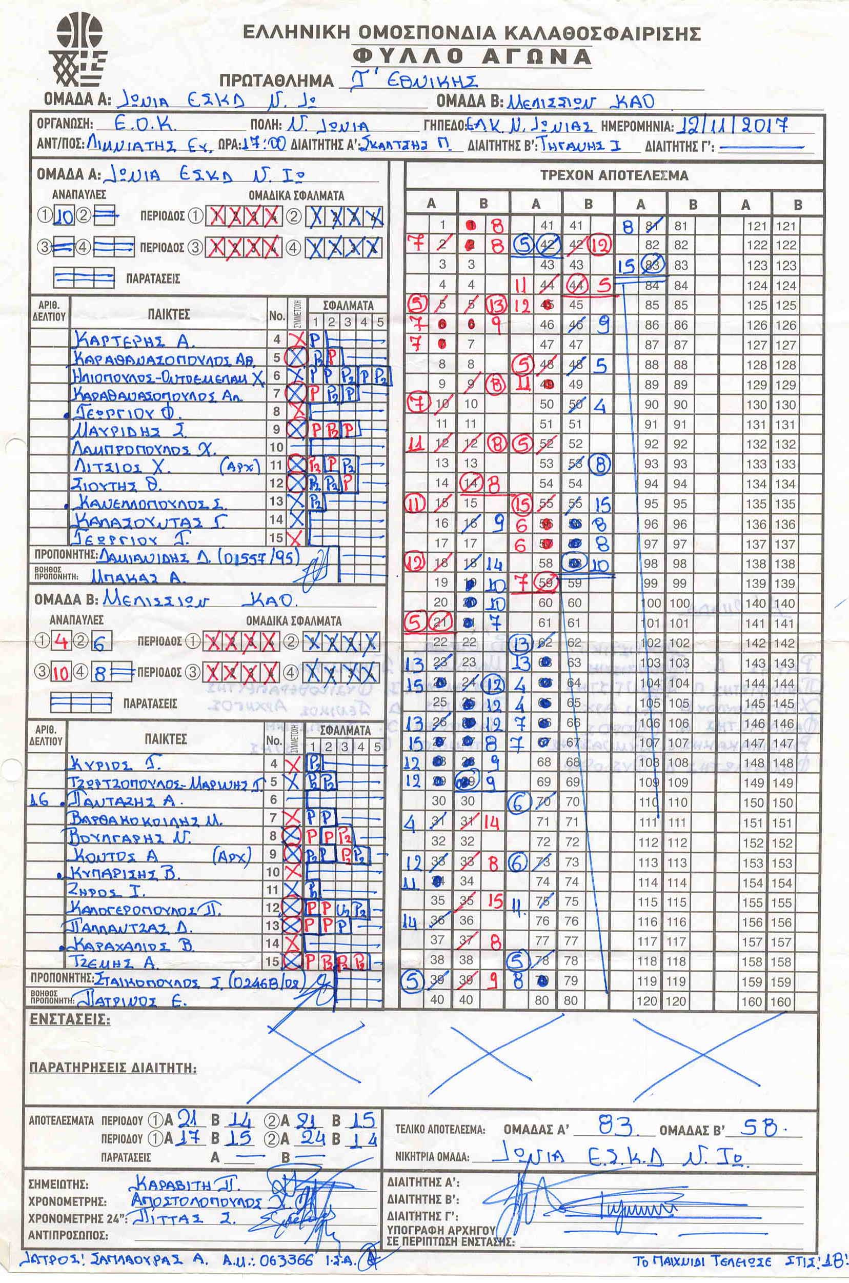ΣΚΟΡΕΡΣ ΤΕΛΙΚΗΣ ΦΑΣΗΣ ΚΟΡΑΣΙΔΕΣ U16