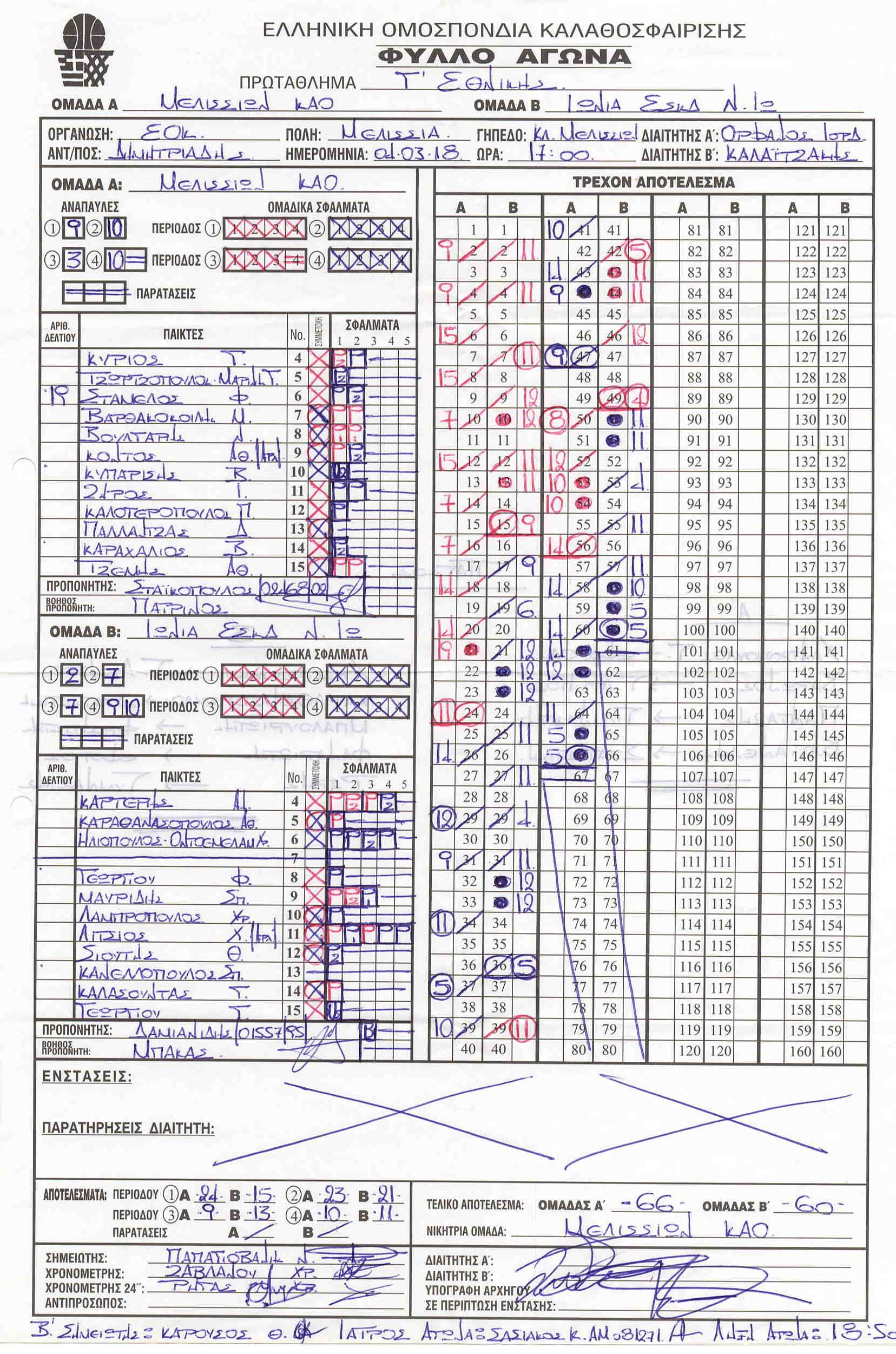 ΣΚΟΡΕΡΣ ΤΕΛΙΚΗΣ ΦΑΣΗΣ ΚΟΡΑΣΙΔΕΣ U16
