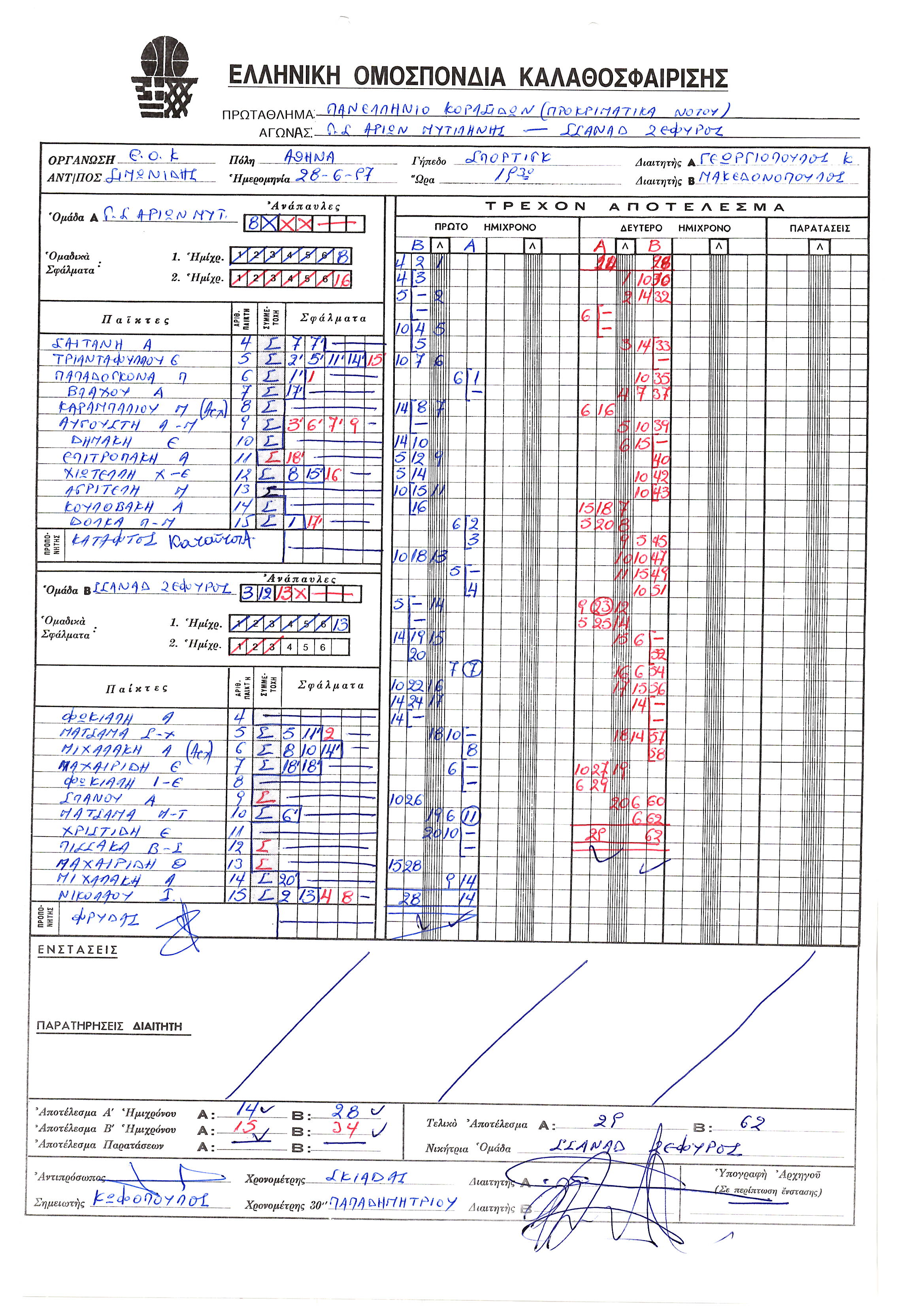 ΣΚΟΡΕΡΣ ΤΕΛΙΚΗΣ ΦΑΣΗΣ ΚΟΡΑΣΙΔΕΣ U16