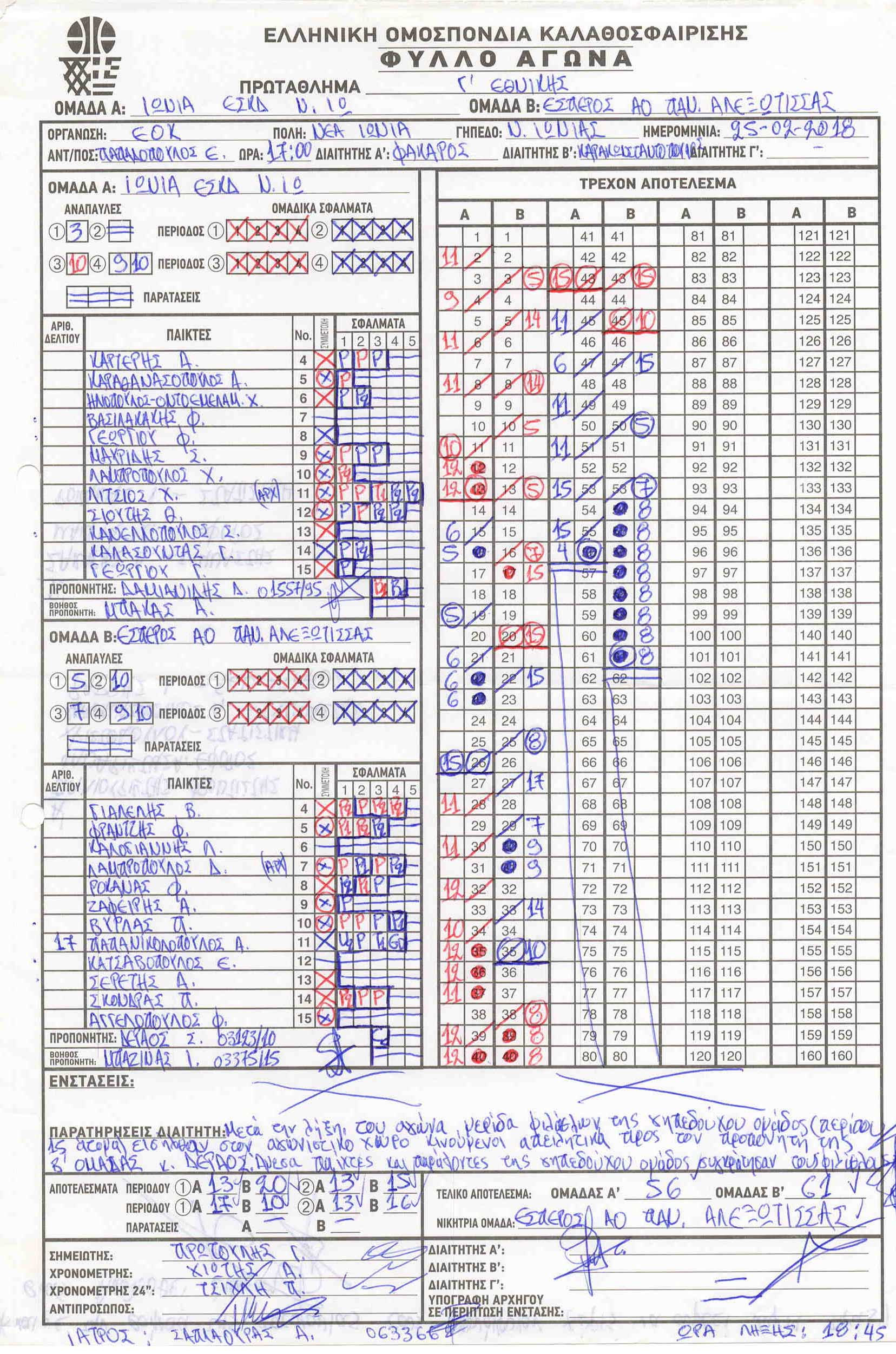 ΣΚΟΡΕΡΣ ΤΕΛΙΚΗΣ ΦΑΣΗΣ ΚΟΡΑΣΙΔΕΣ U16
